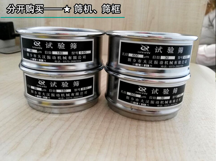 大漢機(jī)械生產(chǎn)的石墨粉試驗(yàn)篩分機(jī)可分為試驗(yàn)篩分機(jī)機(jī)和試驗(yàn)篩分機(jī)框,單臺(tái)試驗(yàn)篩分機(jī)機(jī)在3500元,一臺(tái)篩機(jī)配7個(gè)篩框,直徑有200mm、300mm兩種型號(hào),網(wǎng)目多種,具體網(wǎng)目可根據(jù)用戶(hù)需求定制,篩框的價(jià)格在100-300元/個(gè),這兩種產(chǎn)品可以分開(kāi)購(gòu)買(mǎi),所以這也是影響試驗(yàn)篩分機(jī)價(jià)格的大因素。